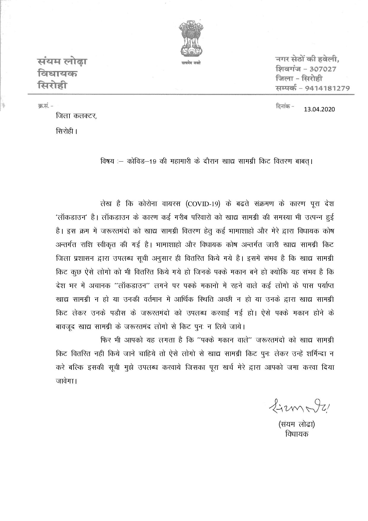 लोढ़ा पहुचे जिला अस्पताल, हर हाल में मिले मरीजो को इलाज